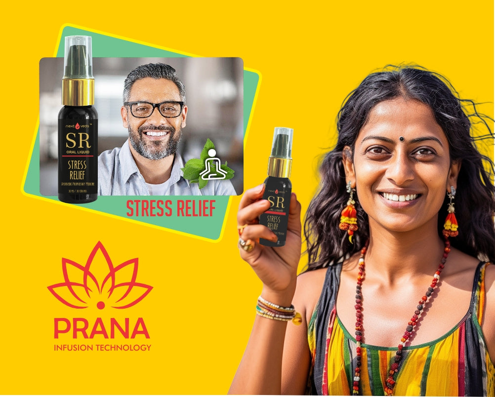 NextVeda Stress Relief Spray is a fast-acting Ayurvedic formula designed to help you relax, sleep better, and restore inner balance.